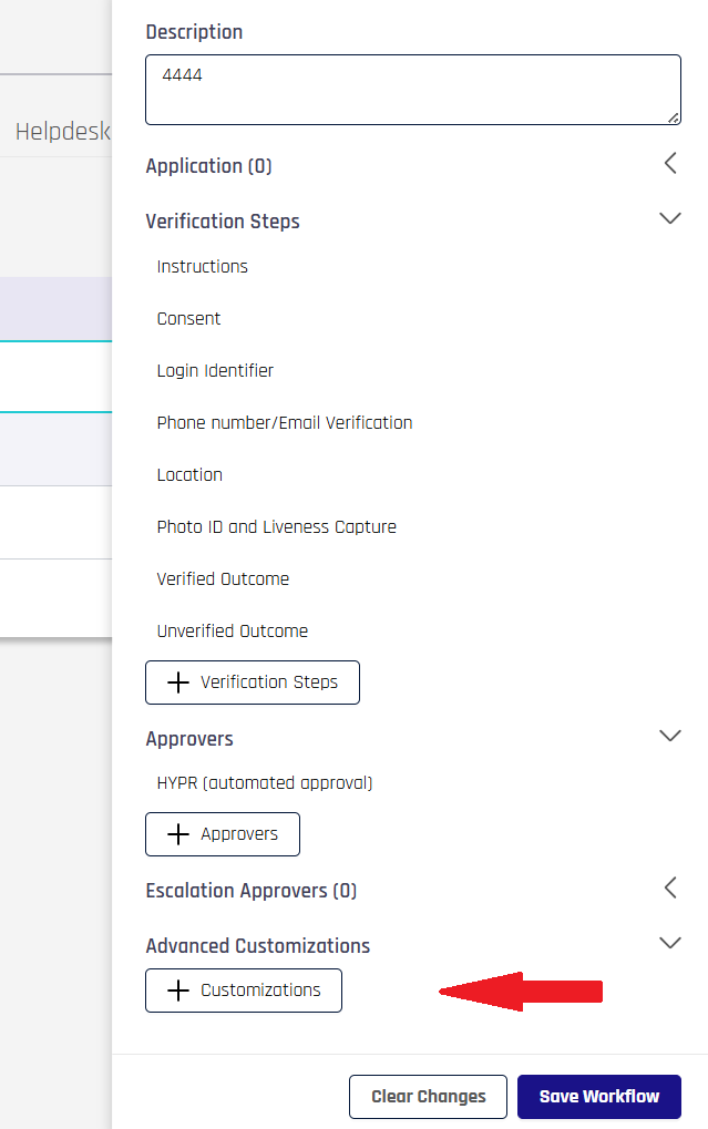- In the workflow configuration menu pane on the right, scroll down to the Content Customization section and click the + Customizations button