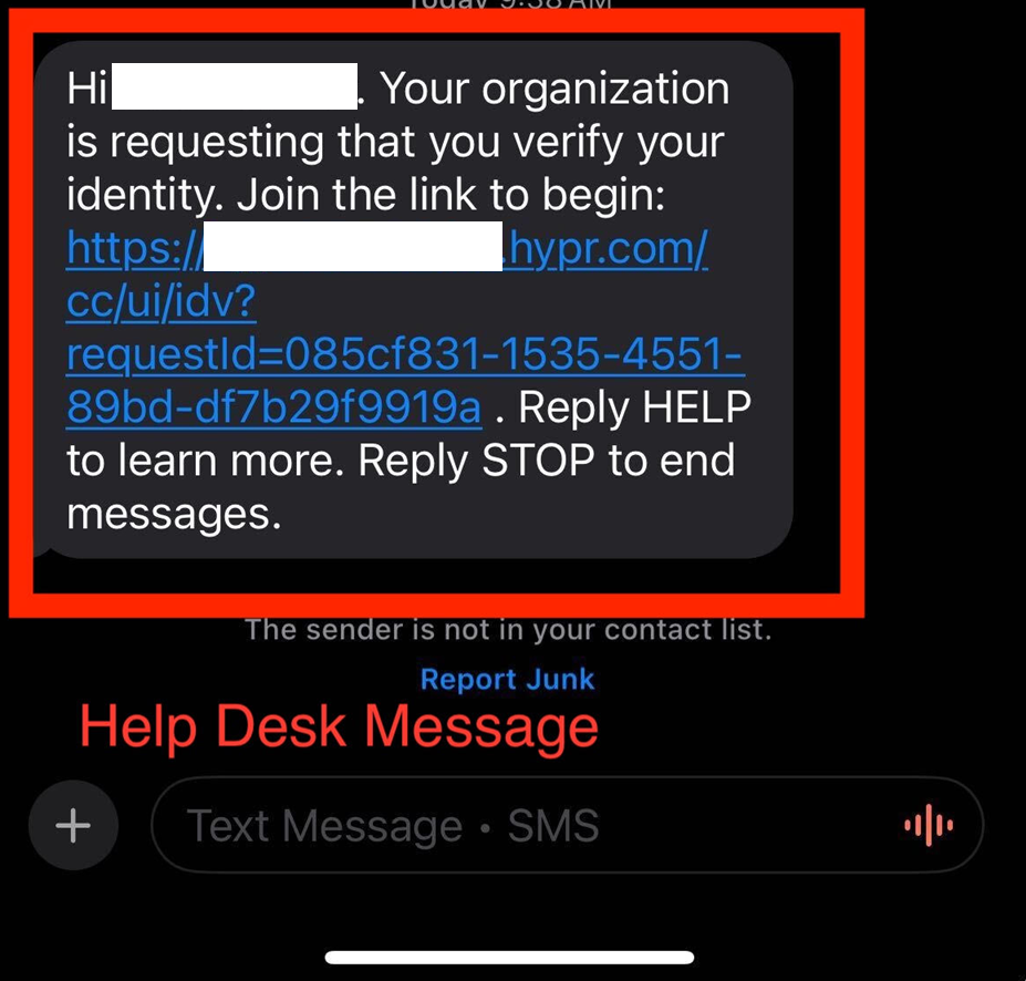 Help Desk Text Message: SMS messages sent for Help Desk operations and support workflows