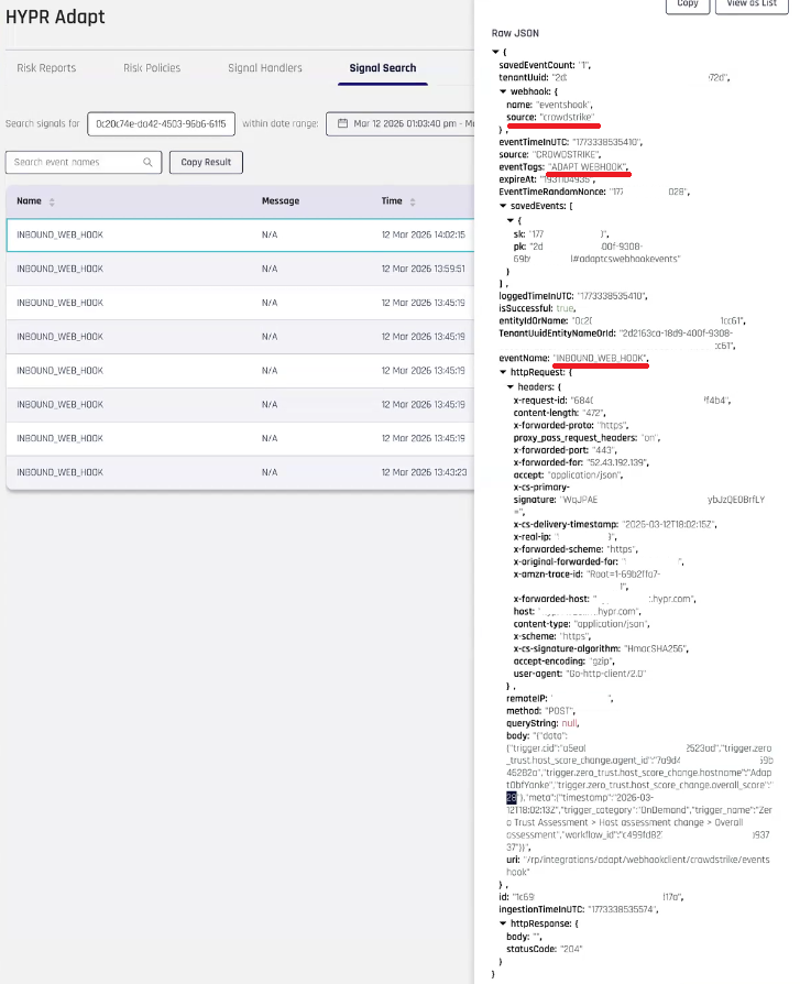Create the signal handler first so that HYPR Adapt can receive CrowdStrike ZTA events before you build the policy. For general Signal Handler screen details, see Signal Handler Management.