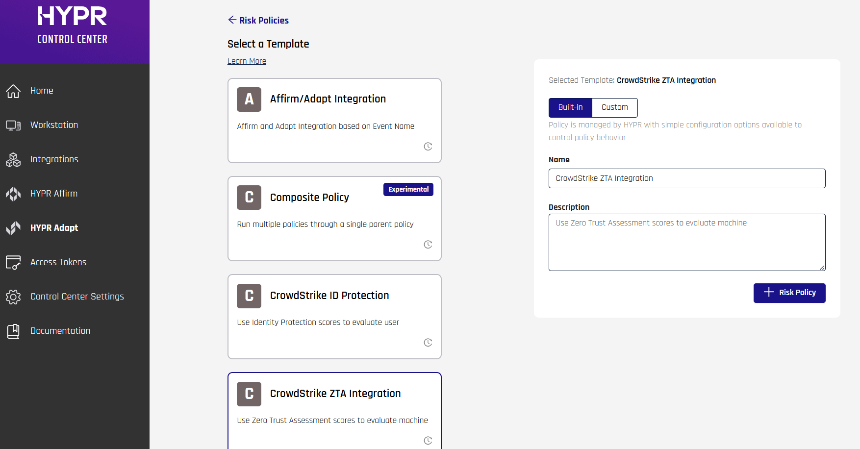 Manage HYPR Adapt risk policies using standard administrative operations via the HYPR Control Center.