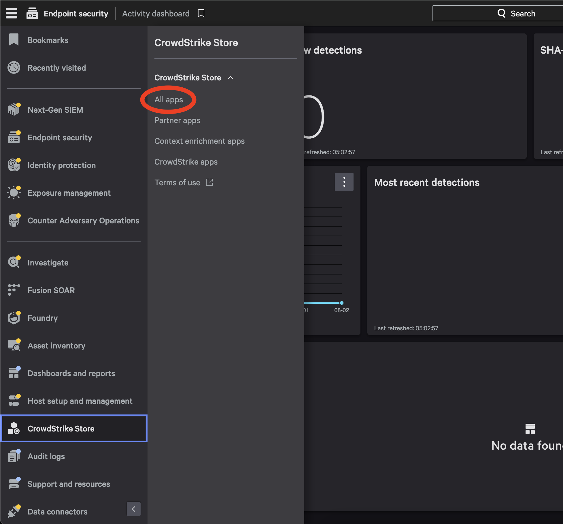 Go to CrowdStrike Store → All Apps.
