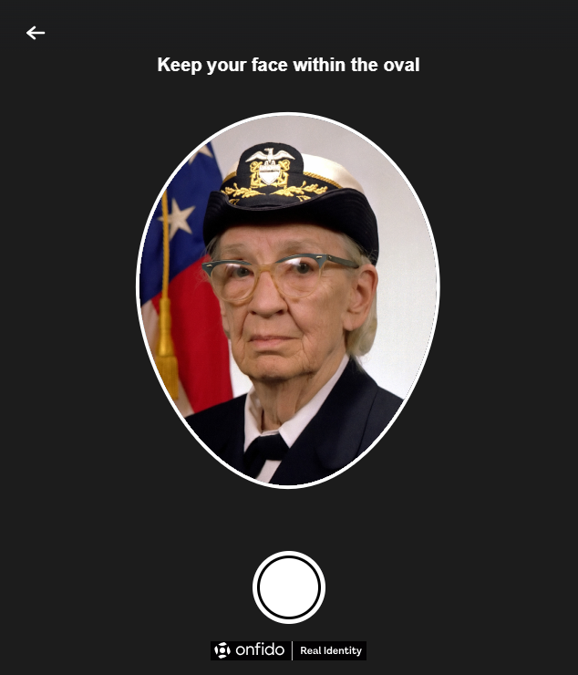 Next you will be asked to take a selfie to be compared to the photo in the picture ID. Make sure you are in good lighting; you may wish to remove any glasses or hats. When ready, click Continue and center your face in the oval, then press the shutter button to take the picture.