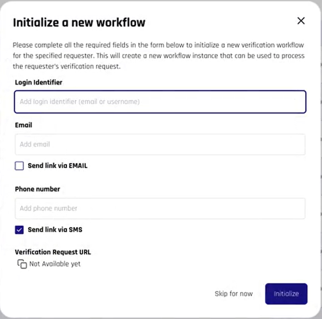 New identity verification workflows can be launched by sending URLs directly to users via email, SMS, or by sharing them via internal communication tools, eliminating delays and improving user experience.