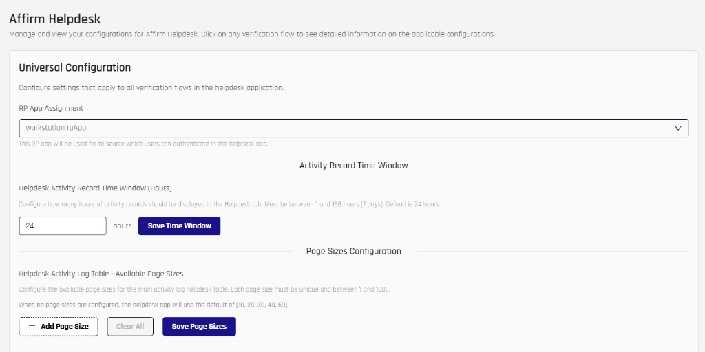 Control Center administrators configure Helpdesk behavior from the Helpdesk Settings tab in the HYPR Affirm menu.