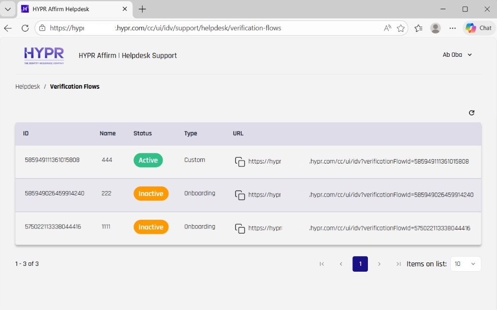 - Verification Flow Management: View and initiate verification sessions with workflow initialization modal
