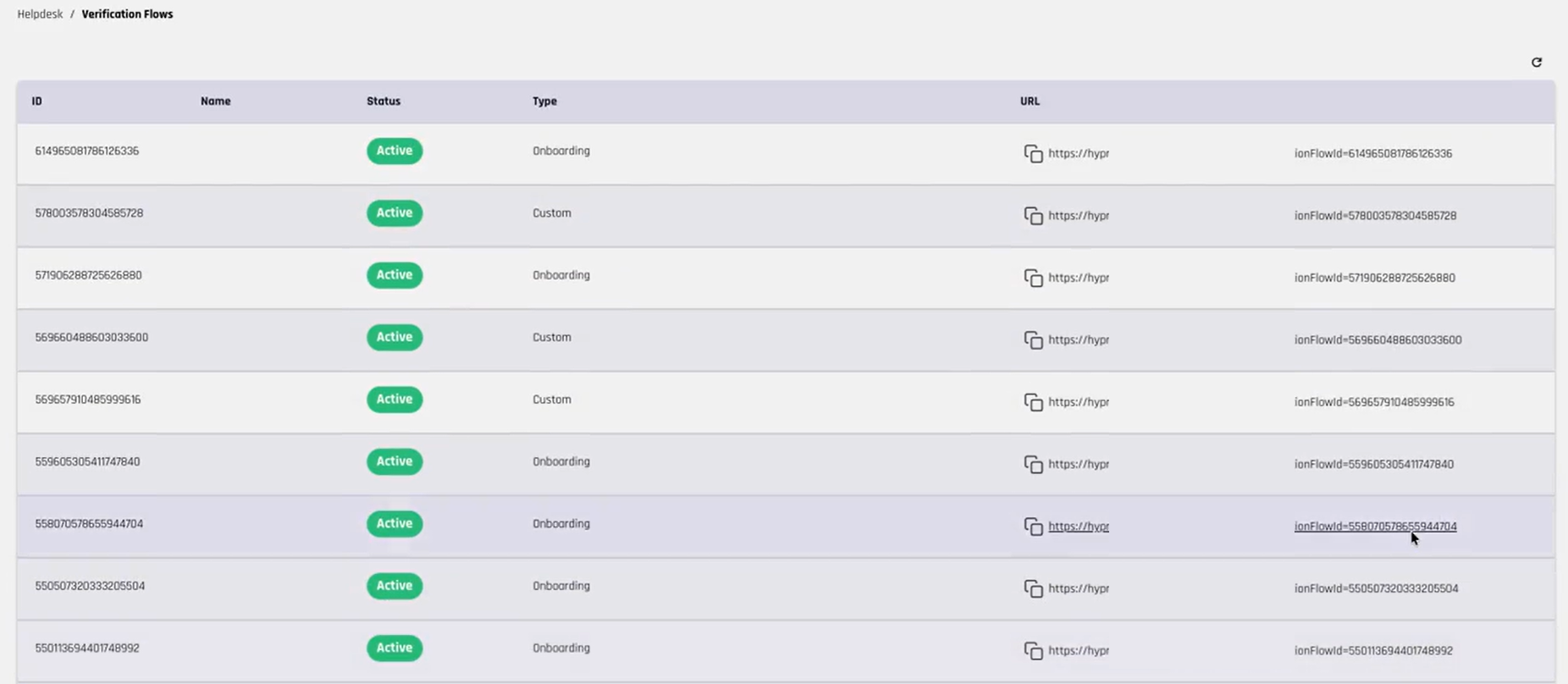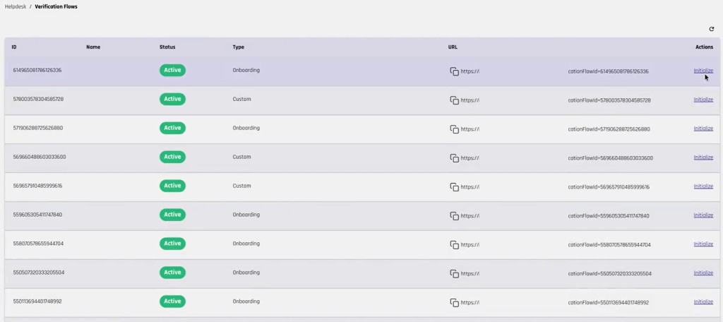 Helpdesk administrators can additionally initialize workflows by clicking the Initialize link next to the corresponding workflow in the Verification Flows view.